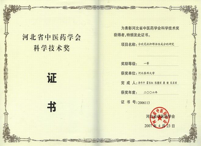 2007-04李作平主持的课题“合欢花抗抑郁活性成分研究