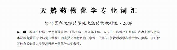 点击链接阅读全文:2009版:天然药物化学中英文对照专业词汇