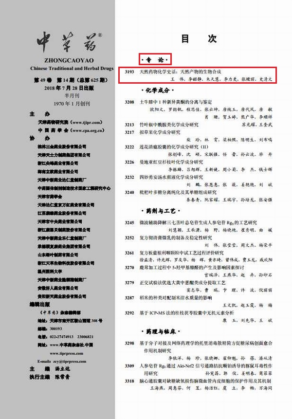 注:本文版权属188bet金宝博 天然药物化学教研室和中草药杂志社