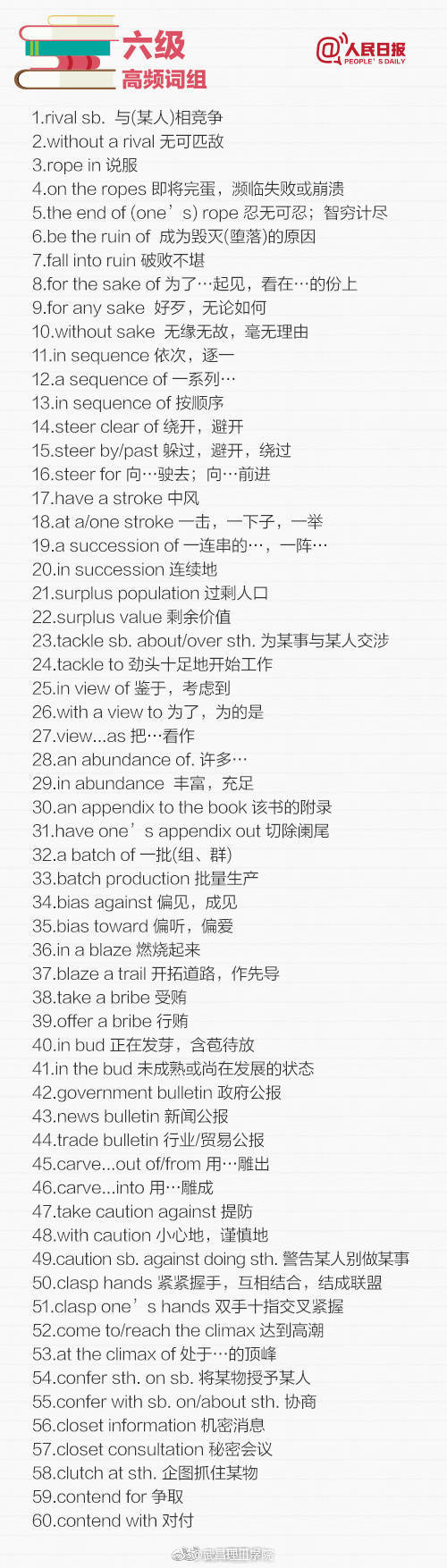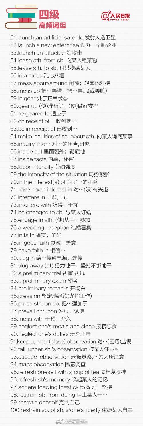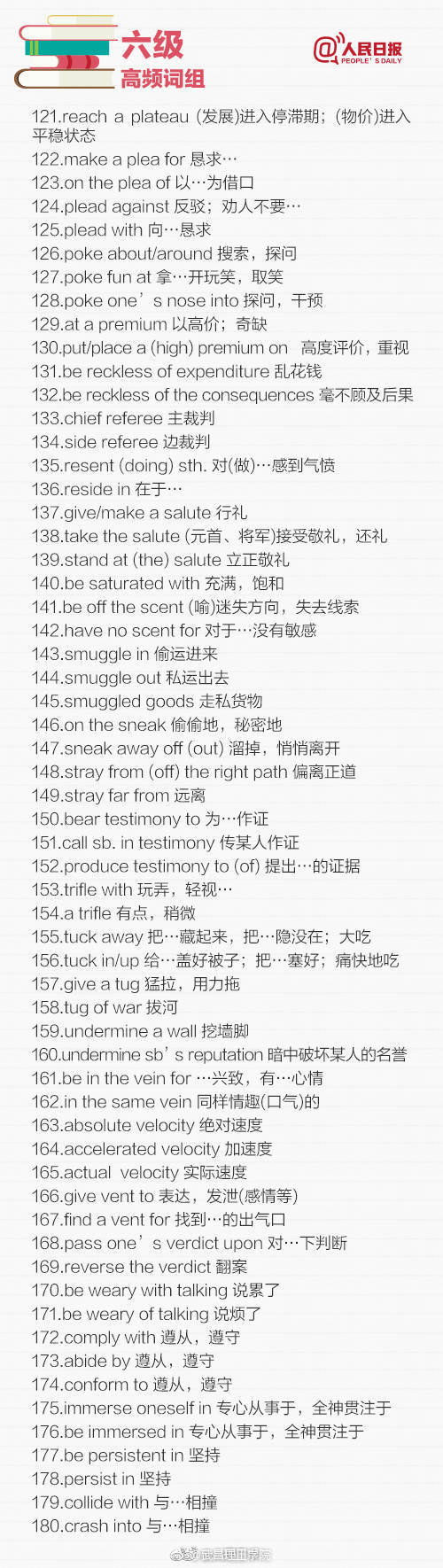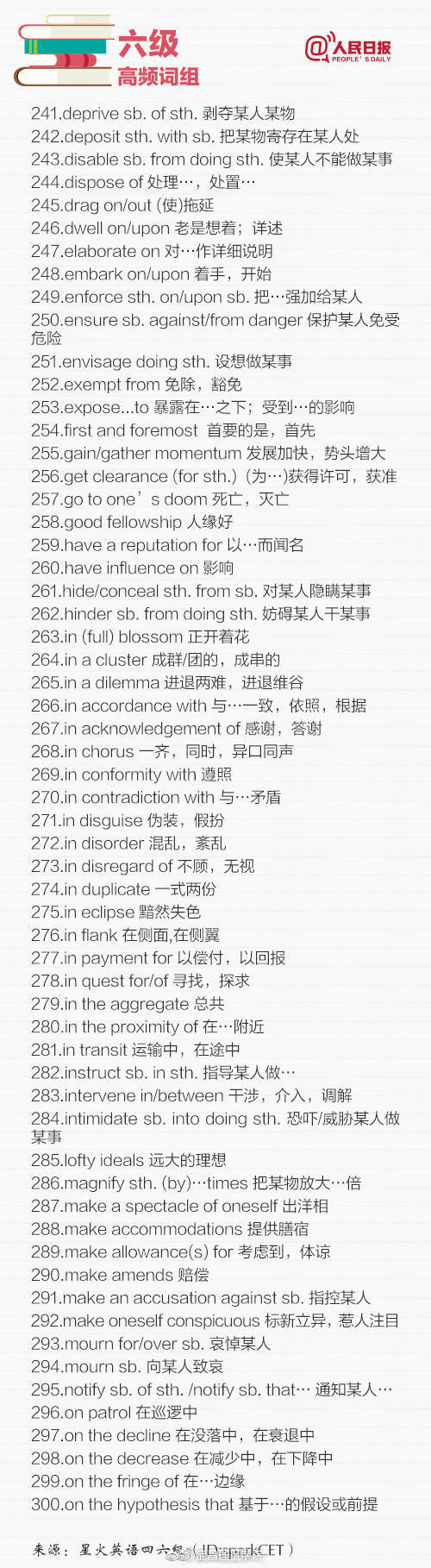 考前查漏补缺必备:四级高频词组200个,六级高频词组300个。