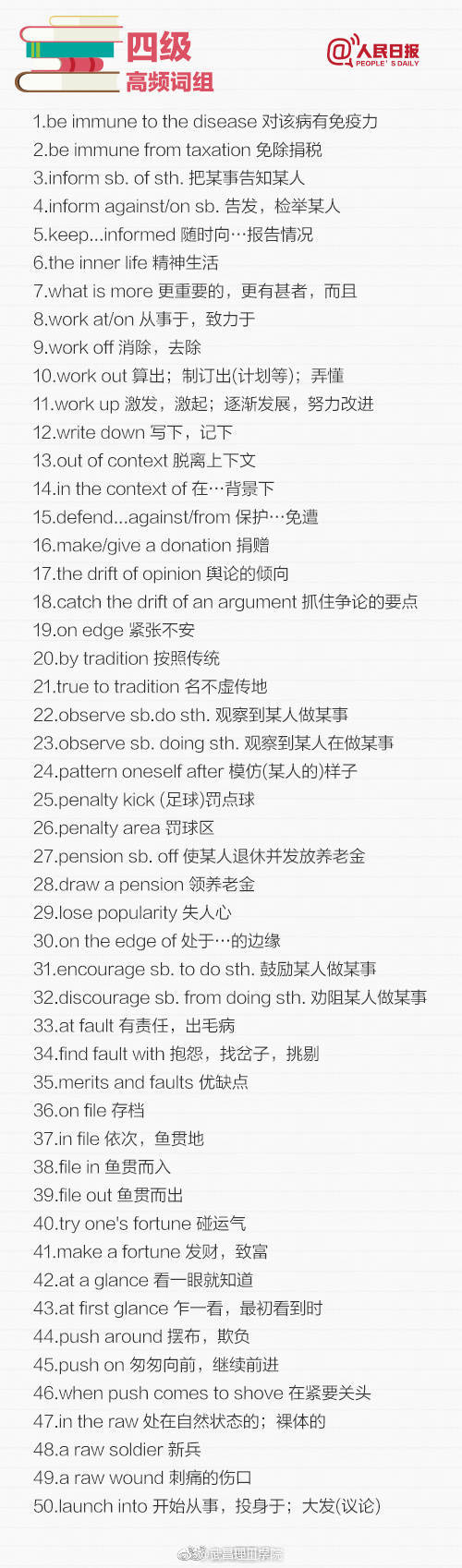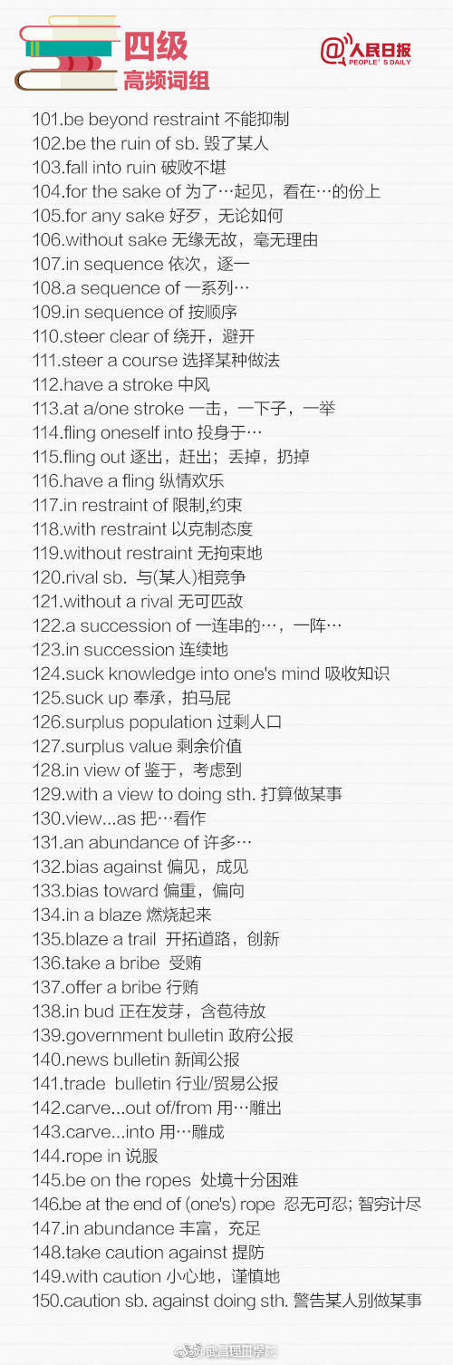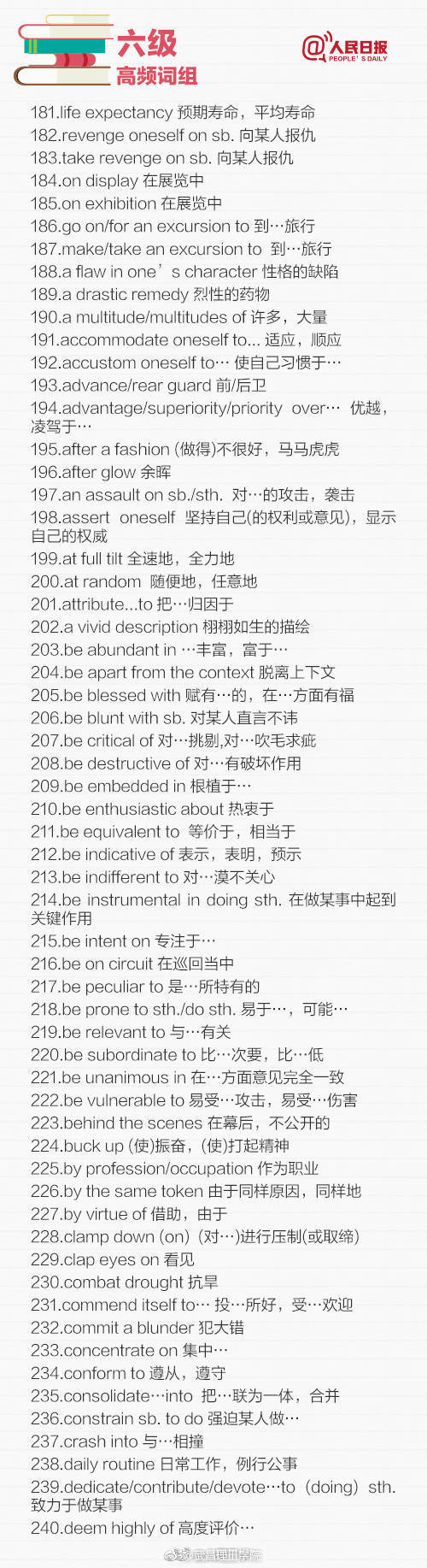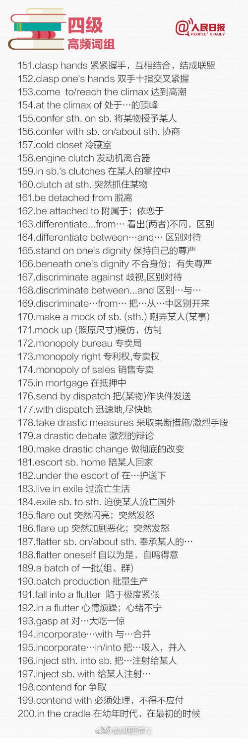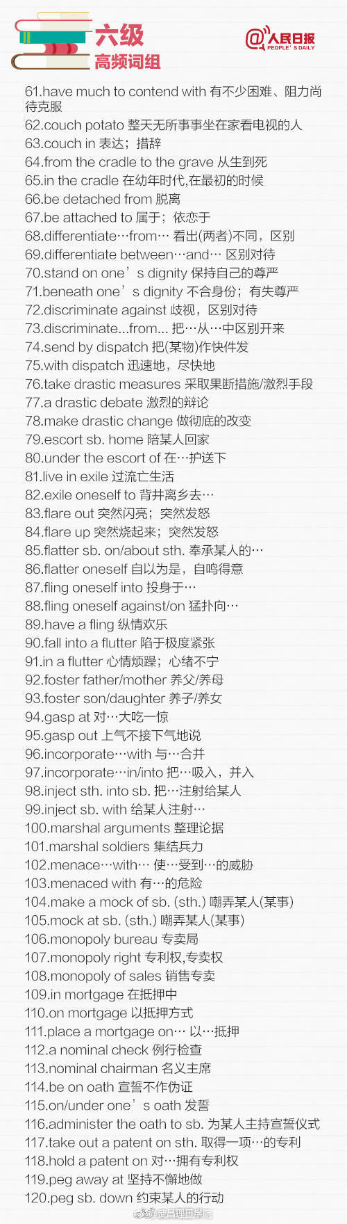 考前查漏补缺必备:四级高频词组200个,六级高频词组300个。